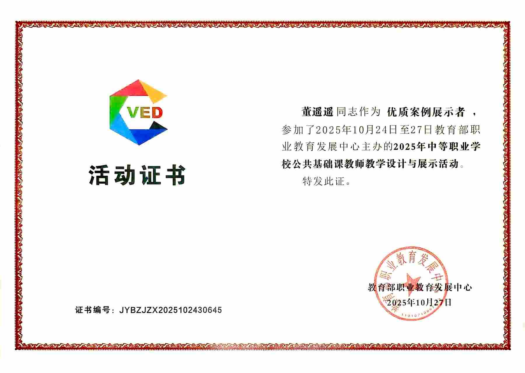 10月25日至27日,由教育部职业教育发展中心主办、高等教育出版社承办的2025年中等职业学校公共基础课教师教学设计与展示活动在青岛落幕。该活动覆盖思想政治、历史、劳动教育等十个公共基础学科,汇聚全国优秀教师比拼教学设计、微课制作及现场答辩能力,为中职公共基础课教学创新搭建了高质量交流平台。