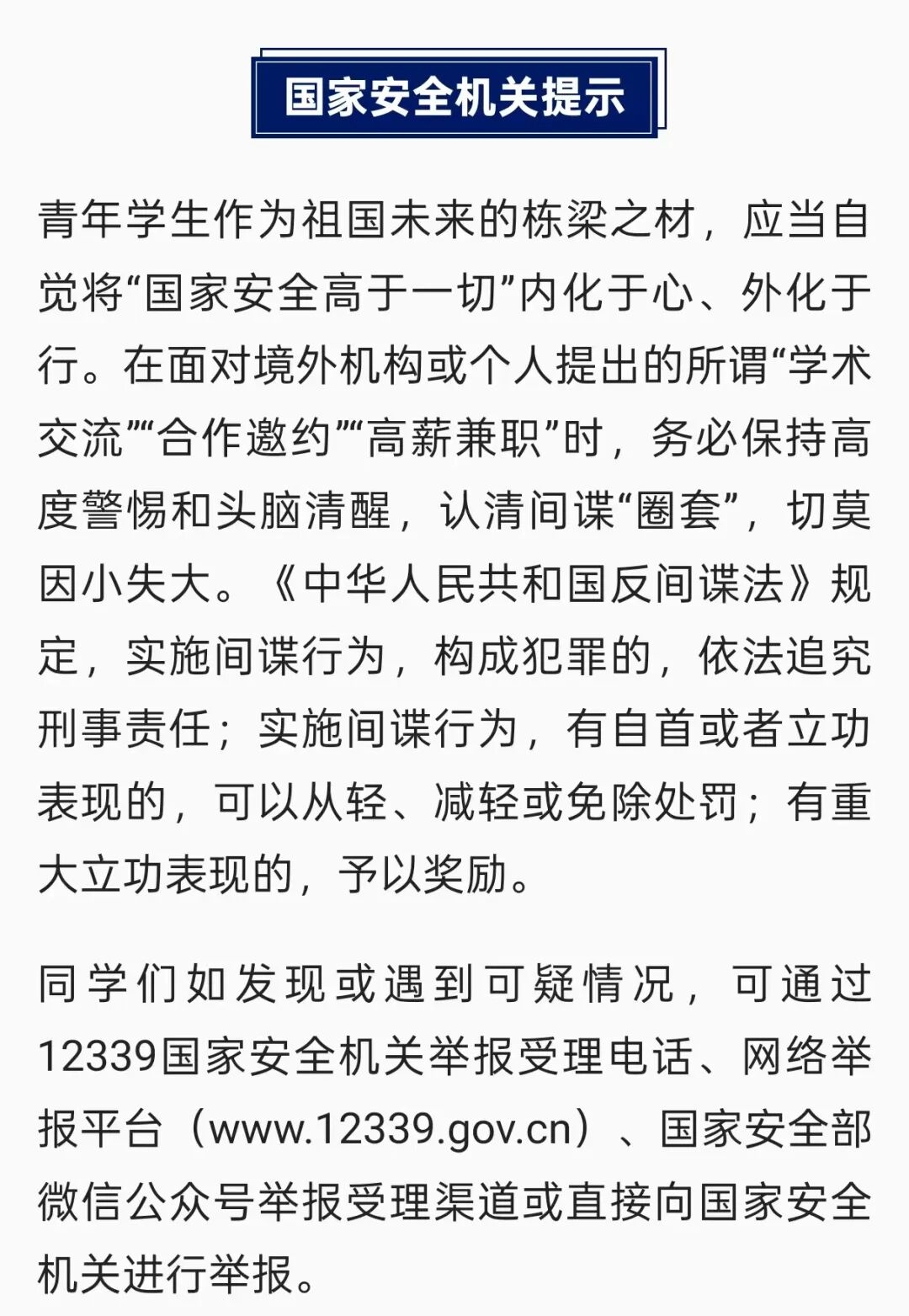 平安校园 | 境外间谍以兼职为名,拉拢、利诱甚至胁迫我青年学生搜集敏感数据、撰写报告,国安机关披露案件详情