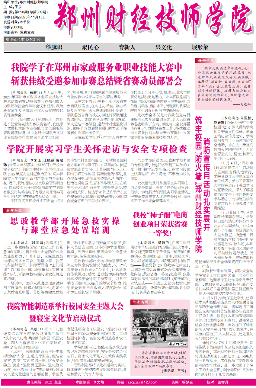 筑牢校园“防火墙”郑州财经技师学院消防宣传月活动扎实展开